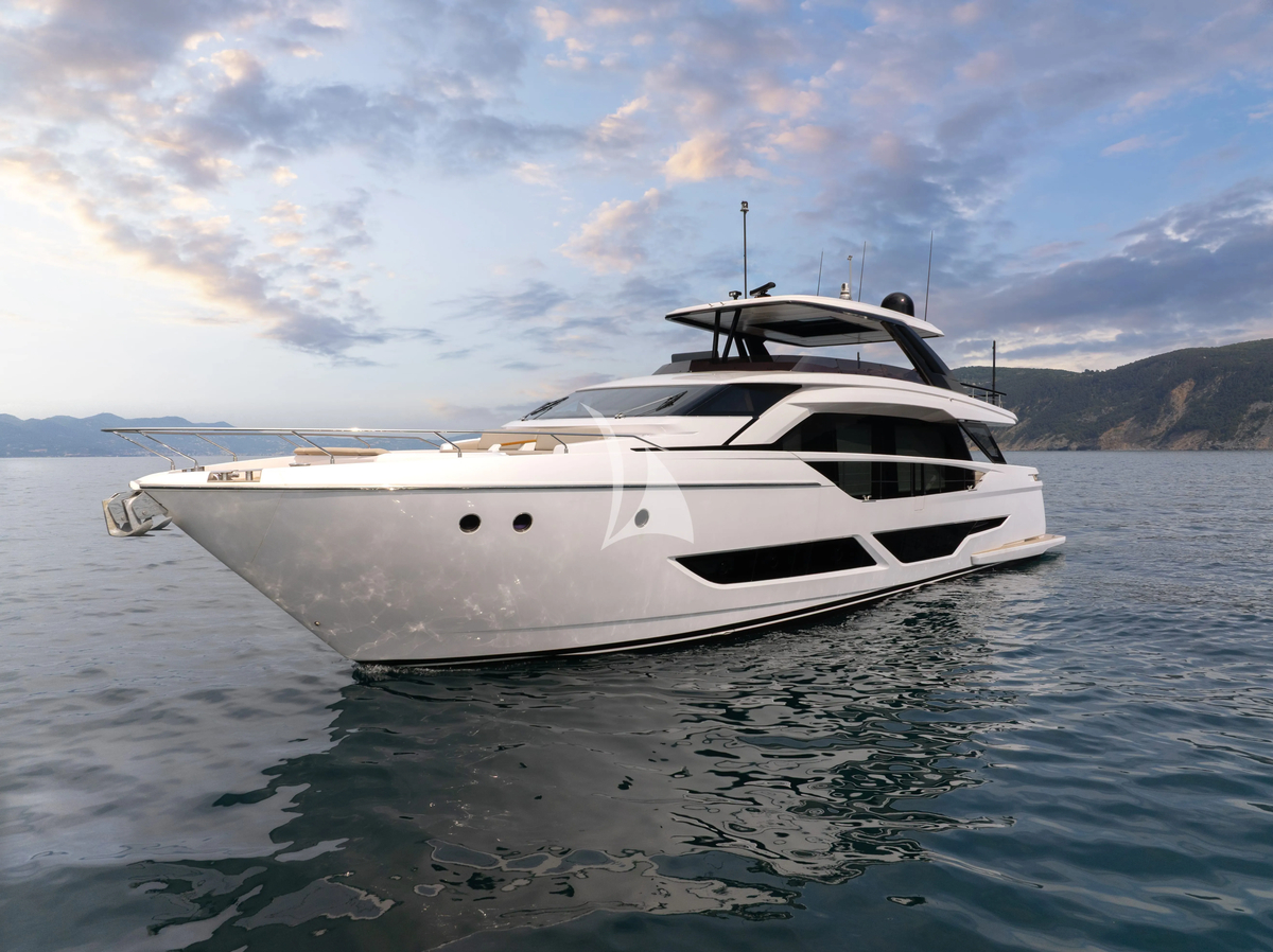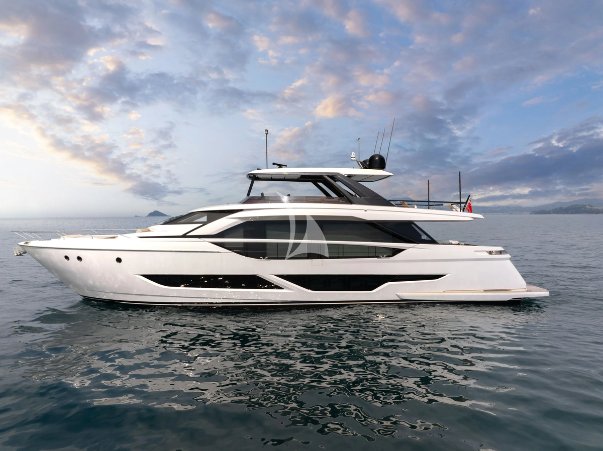 The Ferretti 860 Classic is an elegant Italian flybridge yacht that masterfully blends comfort, style and liveability.