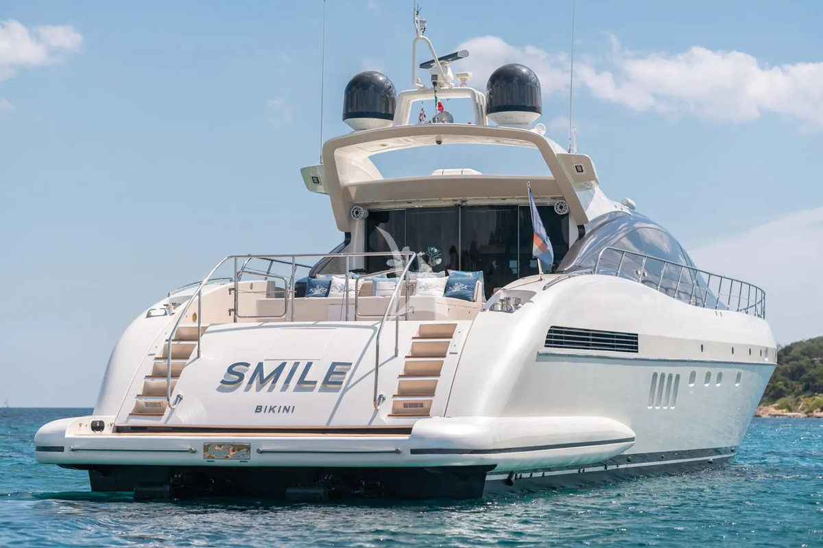 SMILE is a refined example of the Overmarine Mangusta 92 series, a model celebrated for her sleek profile, exhilarating performance and perfectly balanced proportions. Combining speed with understated elegance, she is an open yacht designed for stylish Mediterranean cruising.